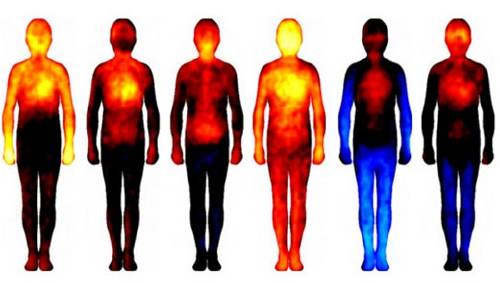 Un estudio reciente demostró como la temperatura va cambiando según nos sintamos y como se encuentre nuestro estado anímico. Un grupo de investigadores Filandeses logró identificar las diferentes reacciones que el cuerpo tiene ante las emociones. El estudio fue publicado en la revista Proceedings of the National Academy of Sciences y consistió en analizar a 773 personas de diferentes nacionalidades y así demostrar el aumento o la disminución de la temperatura corporal dependiendo de la emoción que presentaban en ese momento. Se creó un mapa del calor corporal asociado a las emociones más comunes del ser humano (felicidad, enojo, sorpresa, ansiedad, etc). Y así ver el efecto de las emociones en nuestro cuerpo. En la siguiente ilustración podemos apreciar como las emociones de alegría, amor, enfado y orgullo (entre otras) son las que más elevan nuestra temperatura corporal mientras que la depresión y la tristeza forman parte de las emociones más frías en nuestro cuerpo...
