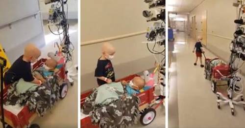 Conmovedor video en el hospital un pequeño niño con cáncer ayuda y pasea a su amiguita con mucha dedicación