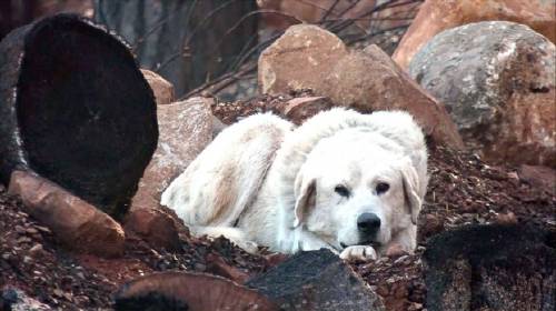 Entre todo el caos y la destrucción del fuego, Madison movía su rabo junto a los restos de su casa.