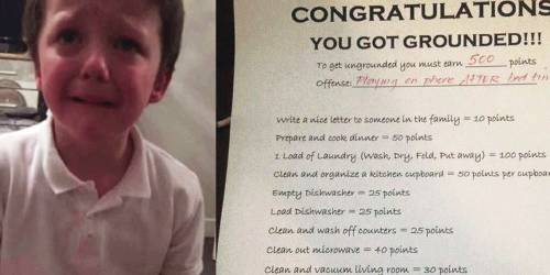 El pequeño Louis, tenía prohibido jugar con el móvil luego de ir a la cama, algo que ignoro y su madre al darse cuenta, le impuso un castigo, tratando de darle una lección que jamás olvidaría. Si este niño quería librarse de dicho castigo, debía obtener 500 puntos, ¿Cómo conseguirá este puntaje? pues su ingeniosa madre, le asignó una lista de tareas cada una con una puntuación.En la nota que su madre le escribió, lo felicito por haber sido castigado y le fraccionó la información, allí le nombró cada una de las tareas a realizar y la cantidad de puntos que por cada una de ellas obtendría.Este castigo es realmente genial, pues no hubo reproches, gritos, ni llanto. Además, el pequeño aprendió a colaborar en el hogar y algo mucho más valioso aún, nunca más incumplirá las normas establecidas por su madre en el hogar, comprendió que las normas son para respetarlas y obedecerlas.¿Cómo te parece el castigo de esta madre? ¿Estás de acuerdo? Ejemplar castigo recibe este pequeño, su madre recibe millones de aplausos en el mundo entero