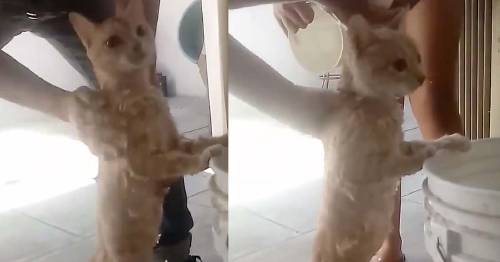 Si tienes un corazón gatuno, tu corazón vibrará con este vídeo.Hablar de agua no es conversación que agrade a los gatos, pues siempre se ha sabido que estos tiernos animalitos no son amantes de las duchas. Aunque se ven relucientes y muy limpios, cuando los mojas muestran su enfado muy rápidamente.Pero como en todo siempre hay excepciones y esto es lo que vamos a ver a continuación. Algunos felinos como este lindo gatito, les encanta darse un buen baño y disfrutan placenteramente. Nuestro peludo y lindo gato, colabora en todo el proceso; se para con sus dos patitas y por lo visto le encanta refrescarse y sentir el agua en todo su cuerpo.Un muy buen baño, le están dando al felino, parece no estar muy sucio, pero lo estan bañando con todas las de la ley.Los gatos odian el agua, ¿mito o realidad?https://www.facebook.com/AMIGOSDE04PATAS/videos/536745473443010/?t=0Probablemente sabes que los gatos detestan el agua y si quieres mantenerlos a raya, con solo lanzar unas cuantas gotas de este líquido, sale despavorido. Es quizás una de las maneras más eficaces para indicarle que no están haciendo lo correcto. Pero como podemos ver, todo depende de la personalidad del minino y de la educación que desde pequeño se le haya inculcado.Para un gato, su lengua es la responsable de su higiene, ya que actúa como un cepillo y al pasarla varias veces sobre su pelaje, va eliminando la suciedad e impurezas. Pero no siempre quedan limpios con este proceso y es necesario darles un baño. Una rutina que desde los 2 o 3 meses se les debe enseñar.Lo más recomendable es realizar este baño con agua tibia y evitar los movimientos bruscos para no lastimarlo. Es suficiente con bañarlos, máximo 2 veces al año; sólo si existe una emergencia que amerite un baño, se realizará lógicamente. De lo contrario, nuestros amiguitos no necesitan tanta agua.Prepárate para disfrutar de este vídeo. ¡Que agradable es observar a este tierno gatito, disfrutar placenteramente de su baño! Si amas los gatos, te invitamos a compartir esta linda escena.