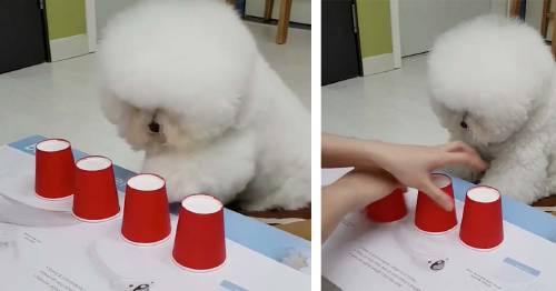 Tenemos que detenernos en este momento, pues estamos a punto de presencia un hermoso perrito, que no solo se conforma con verse adorable y con un lindo peinado, es capaz de jugar y salir victorioso en una contienda que resulta toda una odisea, es divertido y muy simpático este amiguito.Para juegos entretenidos probablemente todos sacamos tiempo y muy probablemente tú has sido participe de este juego, donde una canica o algún pequeño objeto se esconde debajo de un vaso plástico y debemos adivinar en cuál de los muchos vasos que tenemos a la vista, estaba el objeto oculto. Generalmente terminamos confundidos y hasta mareados.Para nuestro amigo peludo, este juego no es ningún reto imposible. Él es muy capaz de seguir todos los movimientos de su dueña humana y con la mayor agilidad y rapidez, sabe dónde está dicho objeto escondido, tiene una habilidad sorprendente y única, lo debemos reconocer.Este perrito pertenece a la raza Bichon Frisé, es imposible no dejarse atrapar de su genialidad y de su lindo aspecto. Nuestra bola de pelos, observa atentamente y acierta exitosamente en ambos intentos. Cuenta con una destreza muy particular que resalta entre sus pares.Quizás sabemos de mascotas y de los trucos que suelen realizar, muchos de ellos cuentan con destrezas y los podemos observar: echado, sentado y algunos menos conocidos como bailar y hasta cantar, pero encontrar el objeto escondido en el vaso correcto, es verdaderamente digno de admirar.Según los científicos, nos afirman que los perros son capaces de pensar, aprender y de resolver. Y no solo esto, ellos educan a sus crías y les ayudan a adaptarse y reconocer lo que es correcto y lo equivoco, premio y castigo. Cada raza cuenta con capacidades que pueden desarrollar más o menos.Pero lograr tan importantes avances y realizar trucos complejos es algo verdaderamente sorprendente, no todos lo pueden hacer, como nuestra linda bola de pelos.https://www.facebook.com/ohlalarevista/videos/10156439576384647/?t=0No te preocupes, así como nuestro perrito es capaz de encontrar el objeto perdido debajo del vaso correcto, tu mascota también lo puede hacer, ármate de paciencia y enséñale; es un truco que poco a poco lo logra eficazmente, ya lo veras.La diversión se resume en el próximo vídeo, la patita de este peludo nunca se equivoca. ¡que hermoso e inteligente! ¿te gustaría tener uno igual en casa?Comparte con todos tus amigos que tienen un perrito como mascota, seguramente se reirán.