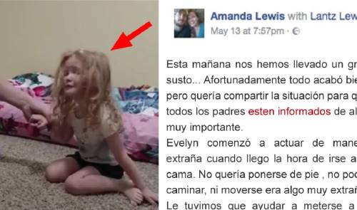 Como toda pequeña suele hacer travesuras y con sus ocurrencias proporciona a su familia una chispa interesante de entusiasmo y felicidad. Pero algo inesperado sucede de repente, donde los rostros de quienes están con la pequeña, dejan ver una señal de preocupación, pues el comportamiento de esta infante de pronto se alteró.Evelyn no era capaz de mantenerse de pie y presentaba torpeza en algunos movimientos, una debilidad profunda que causó preocupación en sus padres, quienes al observar esta conducta extraña, acudieron inmediatamente al hospital, buscando una respuesta, pues de un momento a otro, su niña ya no era la misma algo que les aterrorizaba.La niña fue recibida de muy buena manera en el hospital, los médicos y enfermeras atendieron el caso muy rápidamente, observaron un video que Amanda la madre de la pequeña había grabado, como prueba en la alteración del comportamiento de su hija, lo que sirvió como clave para entender lo que en ella pasaba.Los médicos sin dudarlo dieron un diagnóstico acertado, se trataba de una garrapata que causa un mal llamado, parálisis de garrapata. Una toxina que se trasmite por medio de su saliva y la cual llega al organismo humano o de las mascotas, en una semana empieza a presentar síntomas que si no se detienen a tiempo, pueden llegar a ser fatales.Amanda quedó atónita con este descubrimiento, ella había revisado a su niña y no había encontrado nada, pero esta garrapata estaba en su cabeza y se ocultaba gracias al cabello de la pequeña.Hoy en día la niña ya está recuperada y solo esperan que este testimonio sirva para alertar y prevenir sobre este mal. Estos padres no podían creer lo que le había pasado a su pequeña hija, tuvieron que salir corriendo a buscar ayuda
