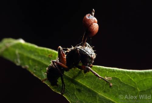 Su nombre científico es Ophiocordyceps unilateralis y se trata de un hongo que toma el control del cerebro y cuerpo de las hormigas para que éste pueda crecer y reproducirse. Un estudio realizado en brasil y publicado en la revista PLoS ONE. Descubrió que el hongo toma el control del cuerpo y cerebro de la hormiga hasta que le produce la muerte. Este hongo controla a cierto tipo de hormigas para que él pueda esparcir sus esporas y así logre reproducirse.