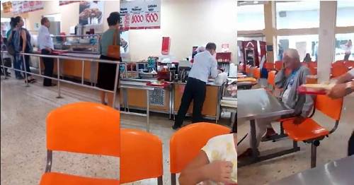 Internet aplaude el gesto tan hermoso de este hombre quien le da comida a un anciano de la calle