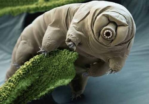 El tardígrado es conocido comúnmente como OSO DE AGUA por la manera en la que se desplaza. Tan solo mide entre 0,05 y 1.5 milímetros. Entre una de sus mejores características bilógicas está la criptobiosis. Es la capacidad de entrar en estado de hibernación. Lo que suspende todos sus procesos metabólicos. Puede estar hasta 100 años en este estado y "revivir" cuando las condiciones del medio ambiente sean las adecuadas para crecer y reproducirse….Además, puede soportar altas temperaturas de hasta 150 grados centígrados y las bajas temperaturas de hasta -200 grados centígrados.