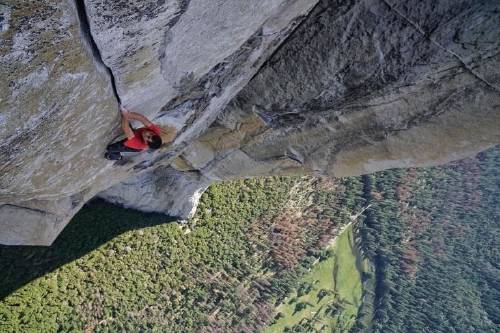 Esto pareció no importarle a los directores Jimmy Chin y Elizabeth Chai Vasarhely , quienes decidieron acompañar al escalador Alex Honnold en su aventura mayor. ¿Te preguntas cual es? Nada más y nada menos que escalar “El Capitán”, una formación rocosa de 3 mil pies de altura (aproximadamente 915 metros), usando la práctica de escalada más peligrosa de todas, la técnica “Solo integral”, en la que no se usa ningún equipo de protección que evite una posible caída.
