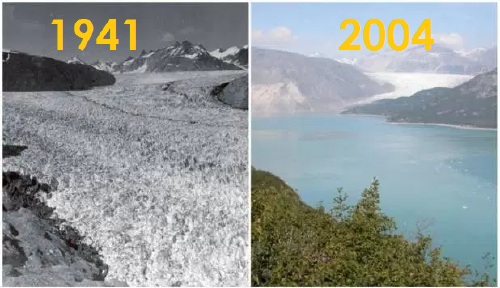 El Glaciar Muir en Alaska Estados Unidos, agosto de 1941 y agosto de 2004