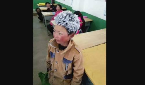 Resulta que Wang Fuman de apenas 8 años, tiene que caminar hora y media para llegar a su escuela todos los días, lo peor de todo es que esta caminatas las hace en medio de bajas temperaturas y sufriendo las inclemencias del clima, por su condición tan humilde, su abuelita no tiene las posibilidades de abrigarlo aún más y esto hace que al llegar a su sitio de estudio, Wang luzca su cabeza congelada, algo que llama la atención de todos los que lo miran.
